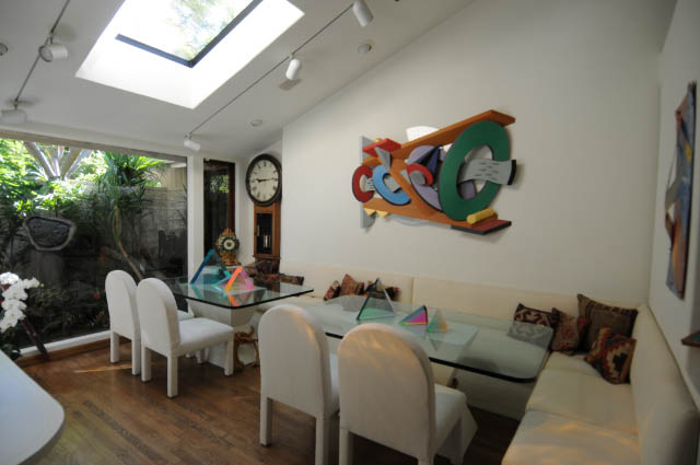 This 4500 square foot Coldwater Canyon Residence in Beverly Hills sits on a full acre. The house modern and eclectic. The owner an leading art critic and historian had the space designed to highlight her own collection. The spacious living room with sunken bar, custom glass curtain walls and skylights, hidden atrium gardens bring natural light in complimenting furnishings. The outside living space features Peruvian stone hardscape, reflection pool, Tree house deck with seating for 12 and fire pit. Guest house, gym, subterranean storage and a full size tennis court tucked into the hill side. Lighted walk ways, lead you through the forest of trees to the guest house, gym and tennis court. As a Beverly Hills General Contractor, we understand the demands and visions of our clients.